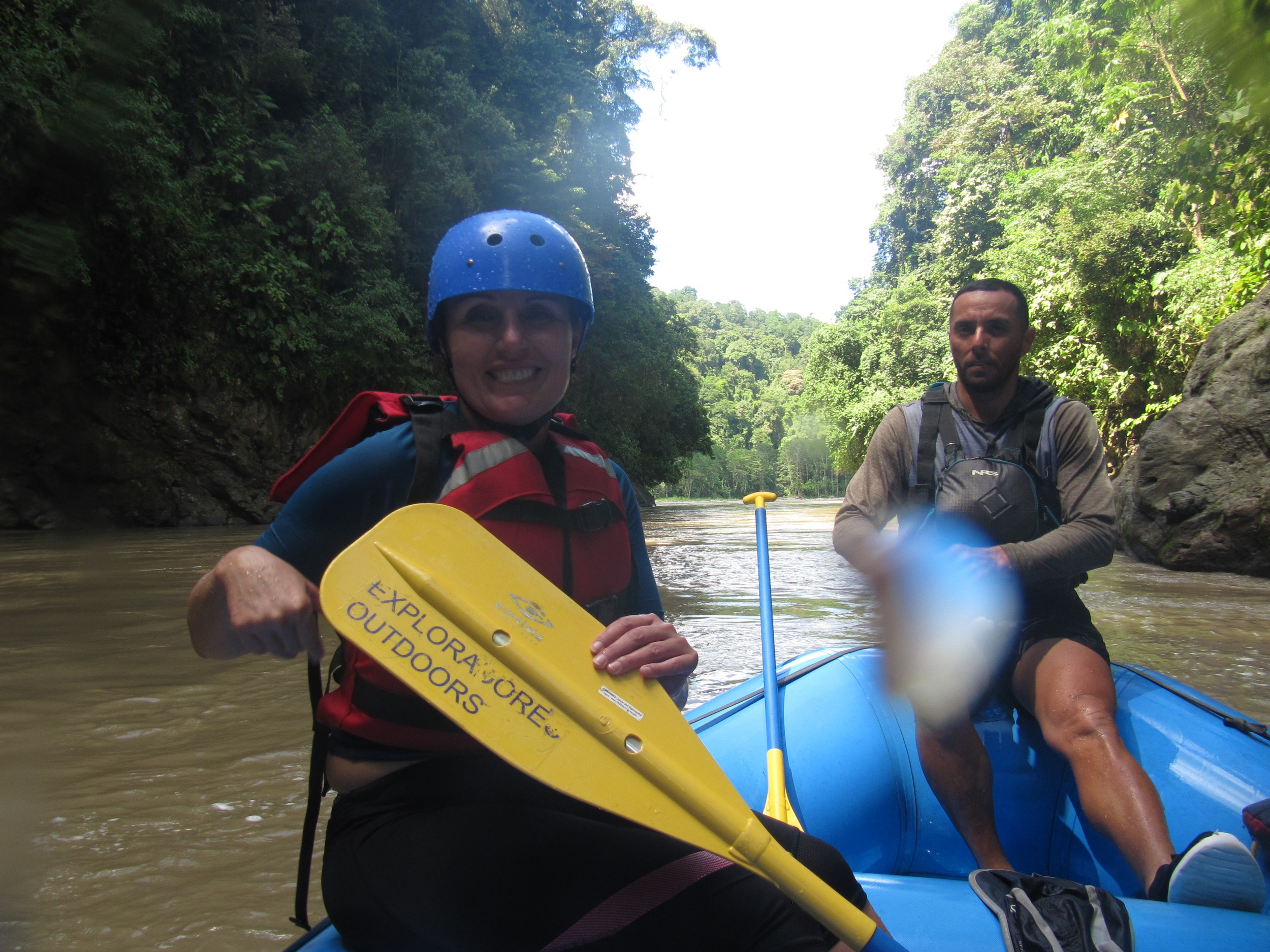 Gestern war wieder ein ereignisreicher und toller Tag, so gut, dass ich abends zu schwach war noch das Tagebuch zu schreiben. Vielleicht lag es auch ein wenig daran, dass auf die Tiere rund um die Namuwoki Lodge verlass war, der Hahn hat um 3:08h gekräht und die Brüllaffen haben eine Stunde später mit eingestimmt. Wir müssen eh um kurz vor sechs los. Also alles gepackt ins Auto geschafft und in einen wunderschönen Morgen gefahren. Einen kurzen Stopp am „Muscle Beach“ von Puerto Viejo eingelegt um uns von der Karibikküste zu verabschieden. Die Fahrt ist recht angenehm, selbst auf der riesigen Baustelle des Highway 32 geht es, wenn es nicht aus Eimern regnet. Die Ticos sind hier sehr pragmatisch, bei einer Vollsperrung wegen eines Unfalls auf dem Highway wird einfach die noch nicht asphaltierte Spur der Baustelle genutzt. Wir schaffen die 120km zur Basis von Exploradores Outdoors in gut zwei Stunden. Dort gibt es erst mal Frühstück und ab geht es mit dem Bus zum Startpunkt des Rafts. Der Bus muss sich ganz schön die Straße hoch und die Schlucht zum Pacuare River runter quälen. Los geht es mit drei Schlauchbooten und einem Begleitkajak. Unser Guide Roberto bezeichnet sich selbst als crazy but good, er macht einige faxen mit uns ist aber natürlich auf unsere Sicherheit bedacht. Der Raft ist super, es geht ganz bequem los, zum üben, dabei können wir die tolle Landschaft um uns herum genießen, alles ist grün und immer mal wieder speist ein Wasserfall den Fluss. In den Stromschnellen heißt es schnell paddeln. Roberto lässt das Boot drehen oder flutet das Boot bei einem speziellen Manöver, es macht einen heiden Spaß. Nach drei Stunden ist das Vergnügen vorbei, das reicht aber auch ich bin platt vom paddeln. In der Basis sind Duschen und es gibt ein gutes Mittagessen. Um kurz nach zwei brechen wir Richtung Orosi auf. Die ganze Zeit geht es durch grüne und malerische Gebirgslandschaft, wir können uns beide nicht satt sehen. Die legendär schlechten Straßen bewahrheiten sich dabei nicht, natürlich wird es mal eng und es gibt auch Schlaglöcher, insgesamt lässt es sich gut fahren. Kurz vor Orosi erwartet uns noch eine kleine Herausforderung, eine Brücke ist defekt und muss umfahren werden. Ein freundlicher Mann der des Weges kommt erklärt uns wortreich wo wir langfahren sollen, ich verstehe nur „dos Kilometros“, Eva versteht den Mann auch nicht, die Jungs auf der Baustelle können auch kein englisch, doch einer bietet uns aber an vorweg zu fahren um uns den Weg zu zeigen, sonst hätten wir es nie gefunden. Der letzte Abschnitt der Strecke erweist sich als echt abenteuerlich die Straße ist nicht mehr als ein Feldweg bei uns und unglaublich steil. Auch das schaffen wir gut 90km waren es von Siquirres. Die Orosi Lodge wird von einem deutschsprachigen Paar geführt. Was dann noch passierte, Abendessen und ab ins Bett – Pura Vida!