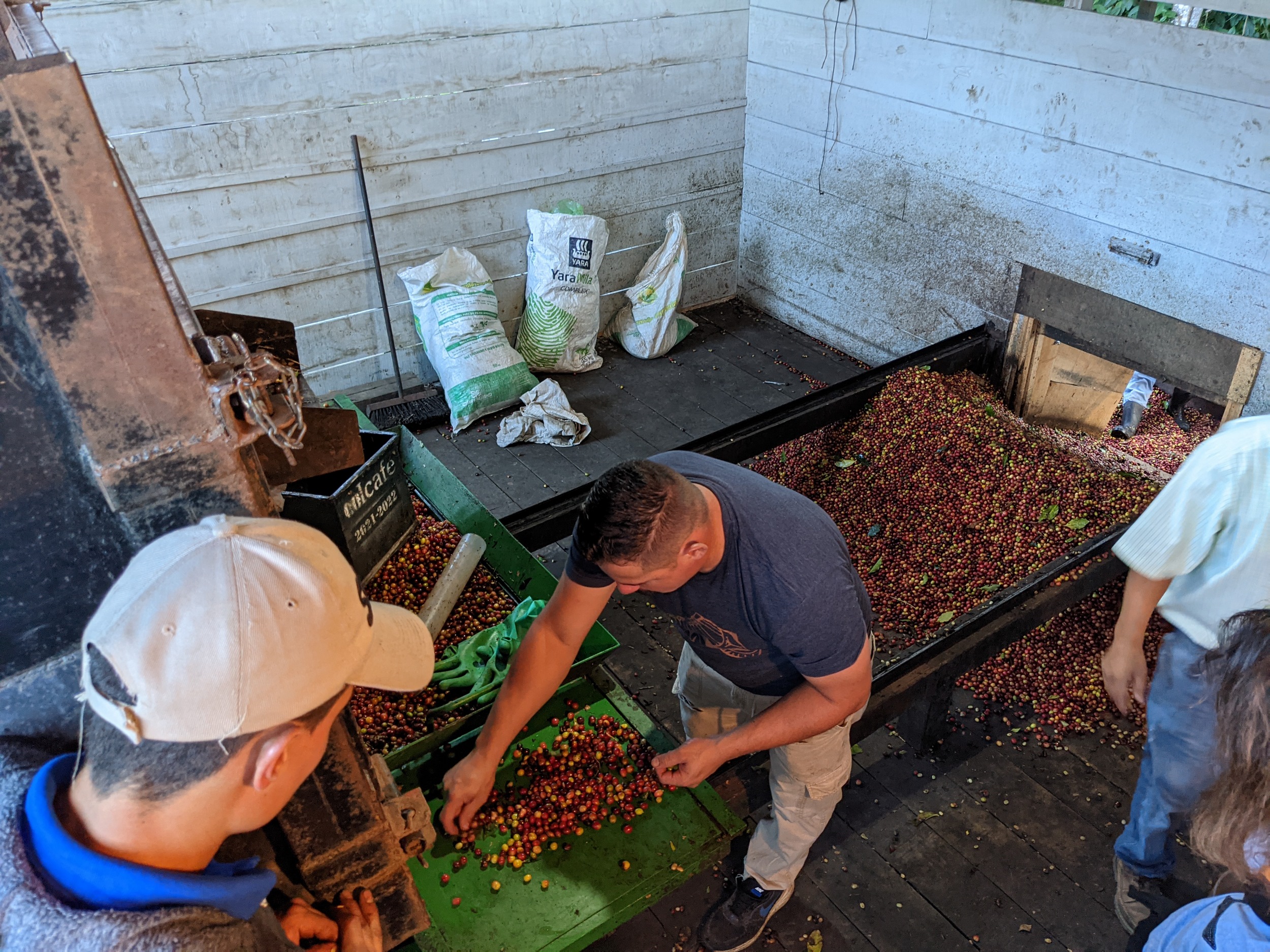 Nach einer kleinen Pause im Hotel starten wir mit Joe’s Kaffee Tour. Wir werden abgeholt und Joe zeigt uns wie der Kaffee wächst, es ist gerade Erntezeit und die reifen Kaffee Kirschen hängen an den Zweigen. Weiter geht es zum Aufkäufer, wo der Kaffee umgeladen und bewertet wird. Dann gibt es noch eine Baumschule für junge Kaffee Pflanzen die er uns zeigt. Wir kommen an den Unterkünften für die Erntehelfer vorbei die aus Panama und Nicaragua herbei geschafft werden. Zum Schluss noch ein Abstecher zu Joe nach Hause wo er uns zeigt wie der Kaffee gereinigt, getrocknet und zum rösten weiterverarbeitet wird.