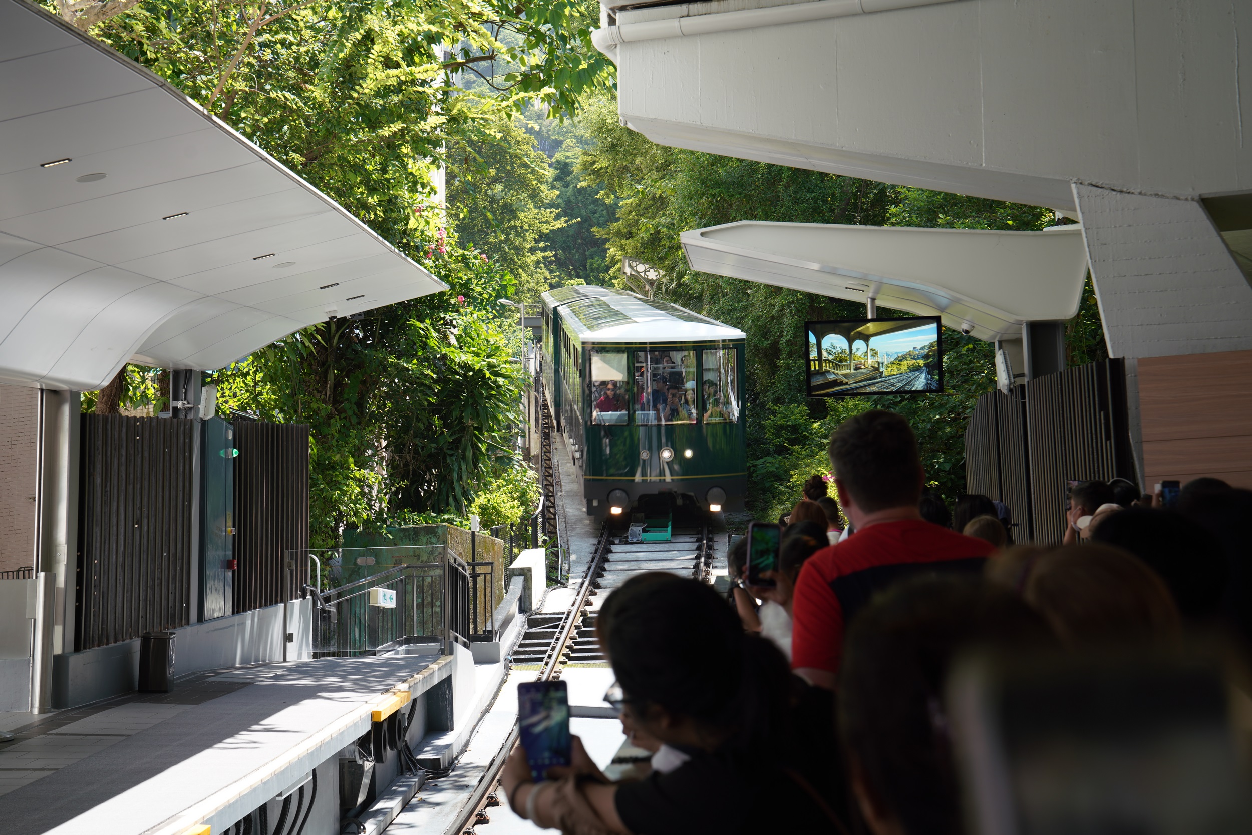Das Frühstück war asiatisch wie erwartet, mit gebratenem Reis und gebratenen Nudeln, davon haben wir uns gleich mal den Bauch vollgeschlagen um fit für den Tag zu sein. Nachdem wir den Tag geplant hatten ging es erst mal in den Victoria Park, das ist mehr eine Anreihung von Sportstätten, mit Schwimmbad, Fußballplätzen, Tennisplätzen etc. Der eigentliche Park ist aber auch ganz nett. Da wir uns die 24h Touristenkarte für die Metro gekauft haben können wir nach Lust und Laune fahren und daher geht es gleich mal weiter zur „The Peak Tram“ statt von der Metro zur Talstation zu laufen will ich unbedingt mit dem Bus fahren, was uns mehr Zeit kostet als zu laufen. Erst stehen wir auf der falschen Straßenseite, dann müssen wir im Bus noch eine Karte Kaufen, geht aber nur einmal mit der Kreditkarte, Bargeld können die nicht zurück geben – bis uns eine Frau im Bus die Fahrt schenkt, das war ihre gute Tat für heute. Die Fahrt mit der Tram auf den Victoria Peak ist dann wirklich abenteuerlich, das geht ziemlich steil bergauf und um es vorweg zu nehmen die Fahrt runter geht um einiges zügiger, wir haben die dann rückwärts gemacht, das hatte schon ein wenig von Phantasialand.