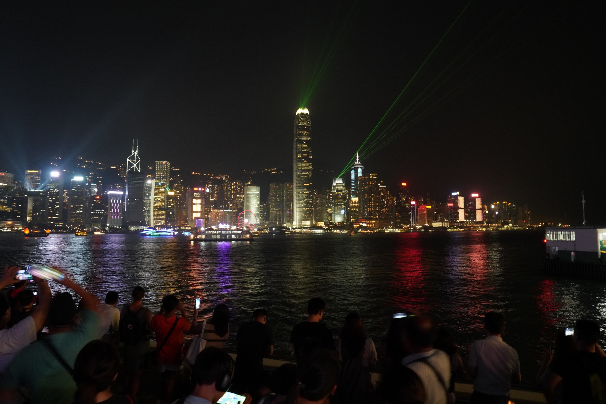 Auf der Kowloon Seite gibt es auch die Musik- und Lichtschow um 20:00h und von hier aus sah man noch mehr davon, allerdings drängelten sich auch erheblich mehr Besucher auf der Promenade, trotzdem bin ich froh, dass wir uns das noch mal angeschaut haben.