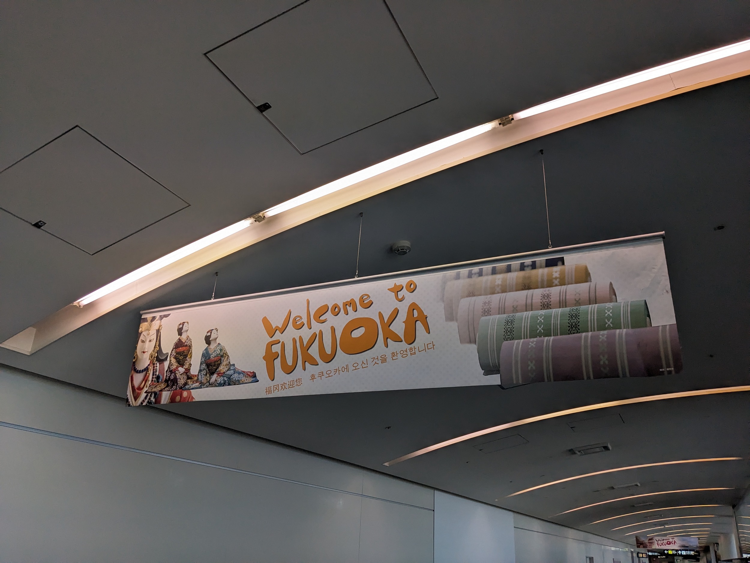 Dann ist uns erst mal aufgefallen wie groß der Flughafen ist. Grenzkontrolle und Security ging ganz fix. Dabei wurde das Ticket mit einem Bild vom Gesicht verknüpft, so dass man beim Boarding das Ticket nicht mehr zeigen musste, ist in Deutschland sicher wegen Datenschutz nicht erlaubt, aber trotzdem eine coole Technologie. Leider hatte der Flieger 1h Verspätung und wie es aussah hat Hongkong Airlines eins seiner ältesten Schätzchen von der Parkposition geholt, die Lackierung war wirklich am Ende, Entertainment lief nicht und die Innenausstattung hatte auch schon mal bessere Zeiten erlebt. Dafür war es nicht so eng, dann musste der Pilot bei der Landung auch noch durchstarten weil in Fukuoka ein paar ungünstige Winde wehten. Offensichtlich hat es dann aber doch geklappt.