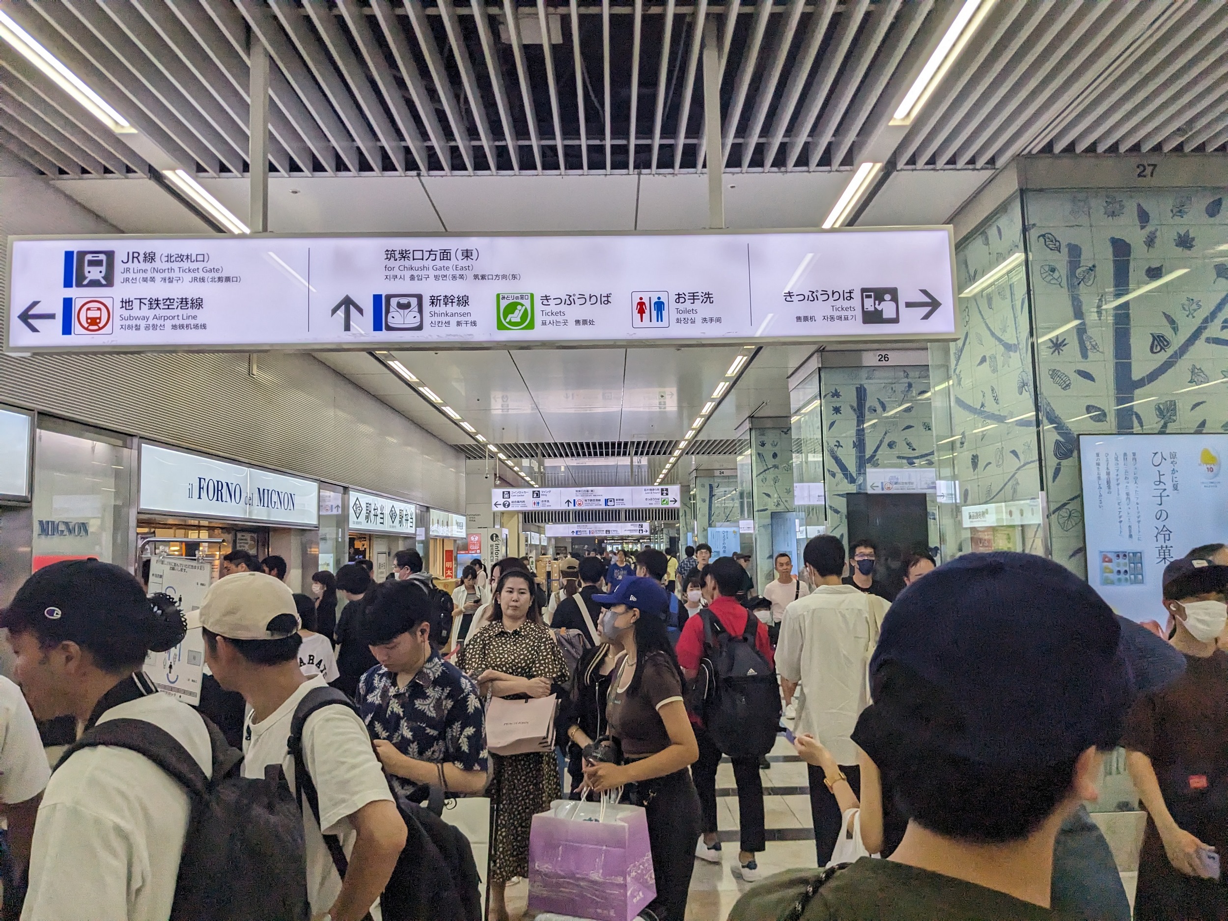 Es ist wieder belastend warm und Ricky will nicht riskieren damit wir den Shinkansen nicht bekommen. Also zurück ins Hotel, schnell noch Getränke gekauft, mit dem Gepäck zum Bahnhof gelaufen und dort Verpflegung fürs Lunch in Form einer Bentobox oder wonach sonst einem gelüstete.