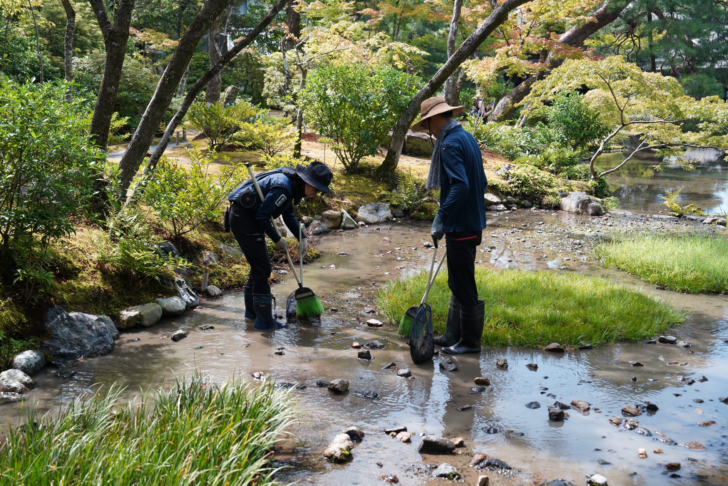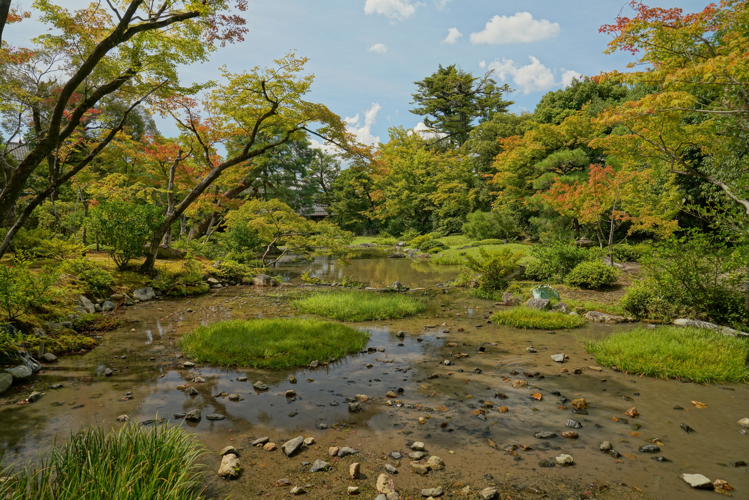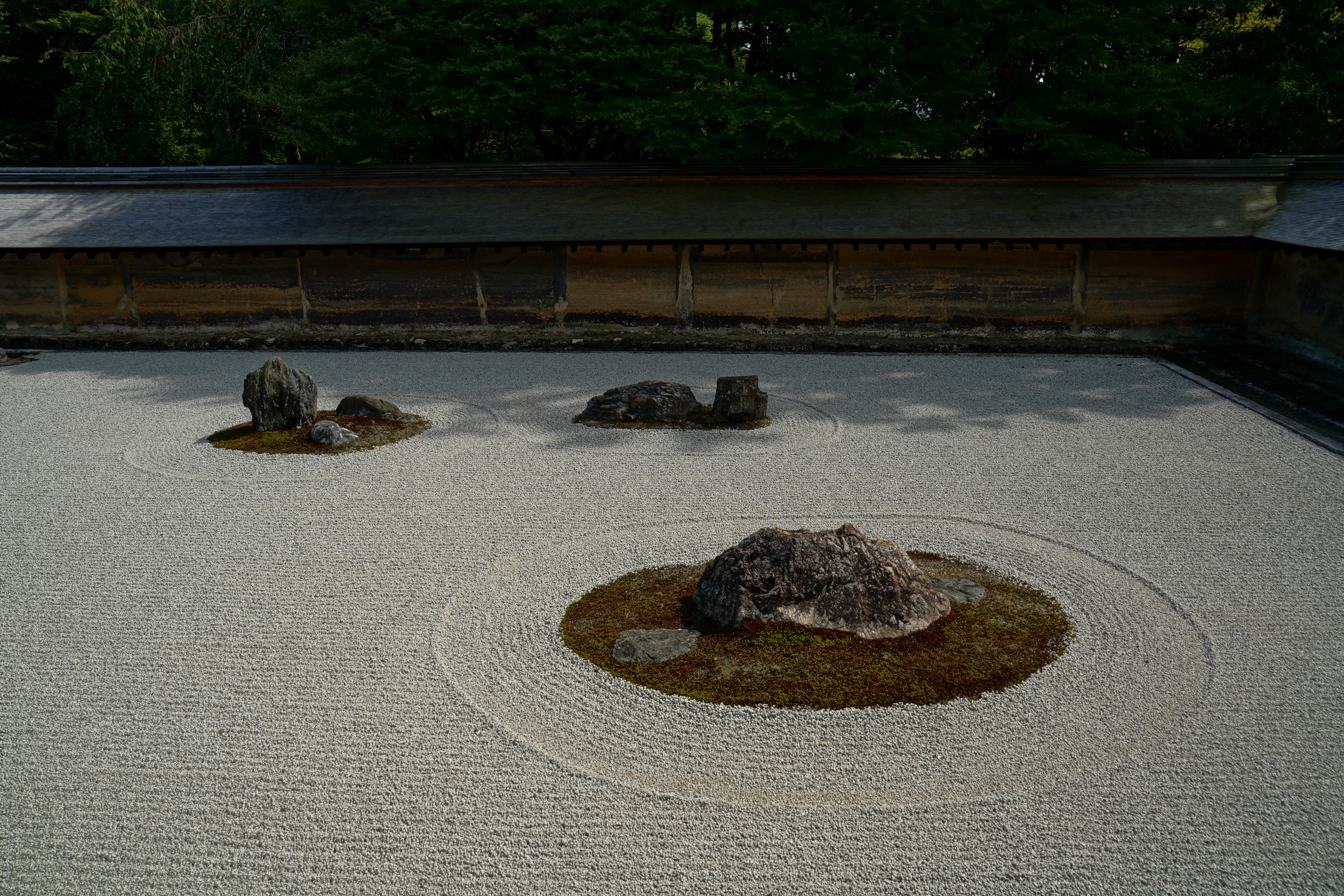 Natürlich stand heute auch noch Besichtigung auf dem Programm, der Ninomaru-Goten Palast. Ganz ehrlich, der hat uns nicht vom Hocker gehauen. Man lief endlos durch den Palast und konnte die Repliken der Wandgemälde betrachten die mir nicht sonderlich imponiert haben. Danach fing unsere Freizeit an und wir sind mit dem Bus los, wie das geht haben wir von Ricky gelernt, einfach mit Google-Maps planen, eigentlich kann ich auch den Guide für so eine Tour machen. Der Bus fuhr uns zum Kare-san-sui Garten, das ist der bekannte Stein Betrachtungsgarten, der in keinem Bildband von Japan fehlen darf. Ich hatte befürchtet der Garten wäre total überlaufen, war er aber nicht, vielleicht ist das auch mehr was für Hardcore Enthusiasten, ich jedenfalls fand es sehr schön.