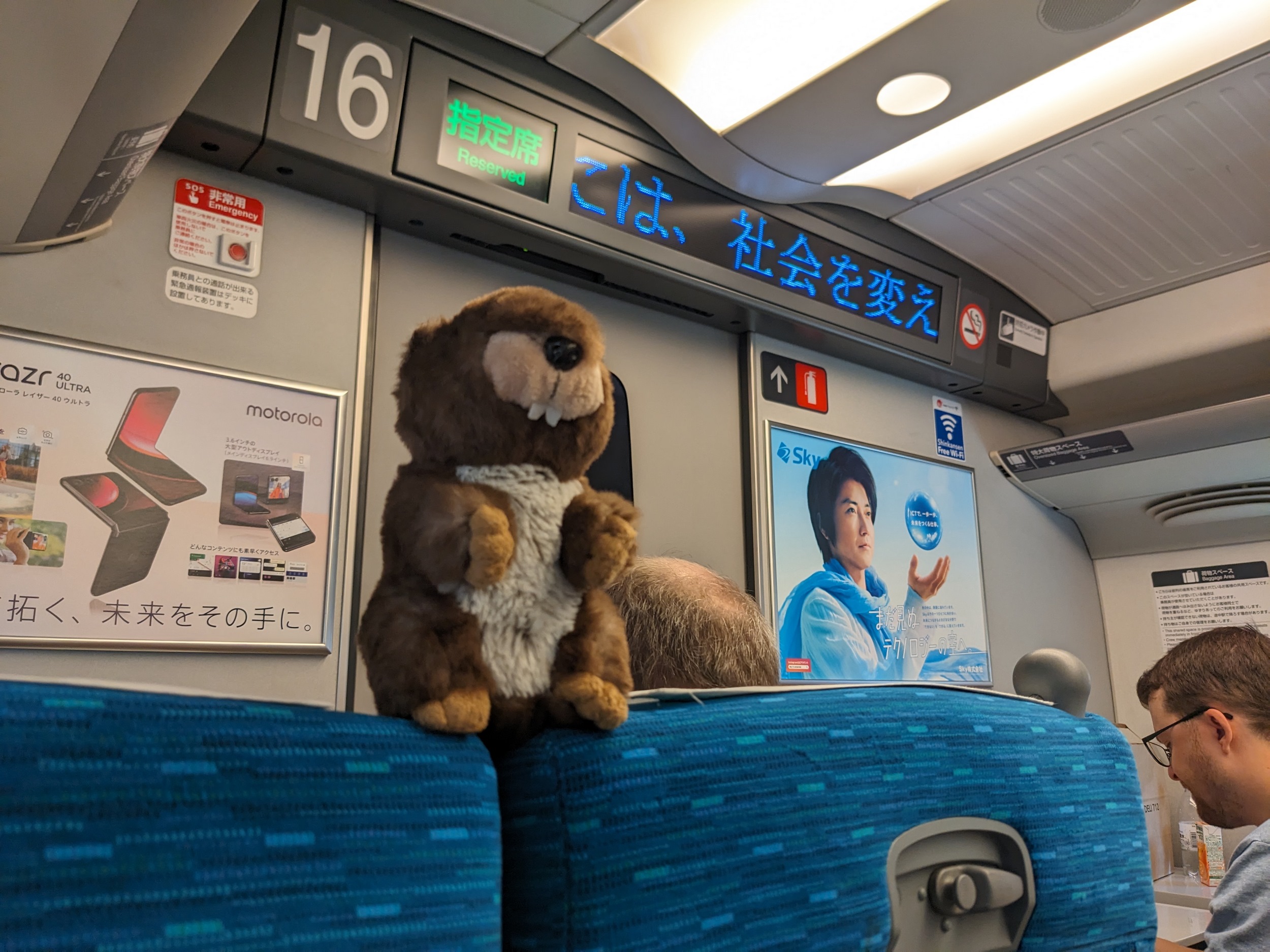 Dann noch die Erkenntnis, dass der Shinkansen nicht Teil der Netzkarte ist die wir bekommen haben, daher gab es noch eine Fahrkarte. Auf dem Bahnsteig herrschen strenge Regeln man muss zurück treten bei Einfahrt des Zuges, kann sich aber im Gegensatz zu Deutschland vor der Tür aufstellen und der Zug hält auch so dass die Tür dort ist wo es auf dem Bahnsteig angezeichnet ist, genial.