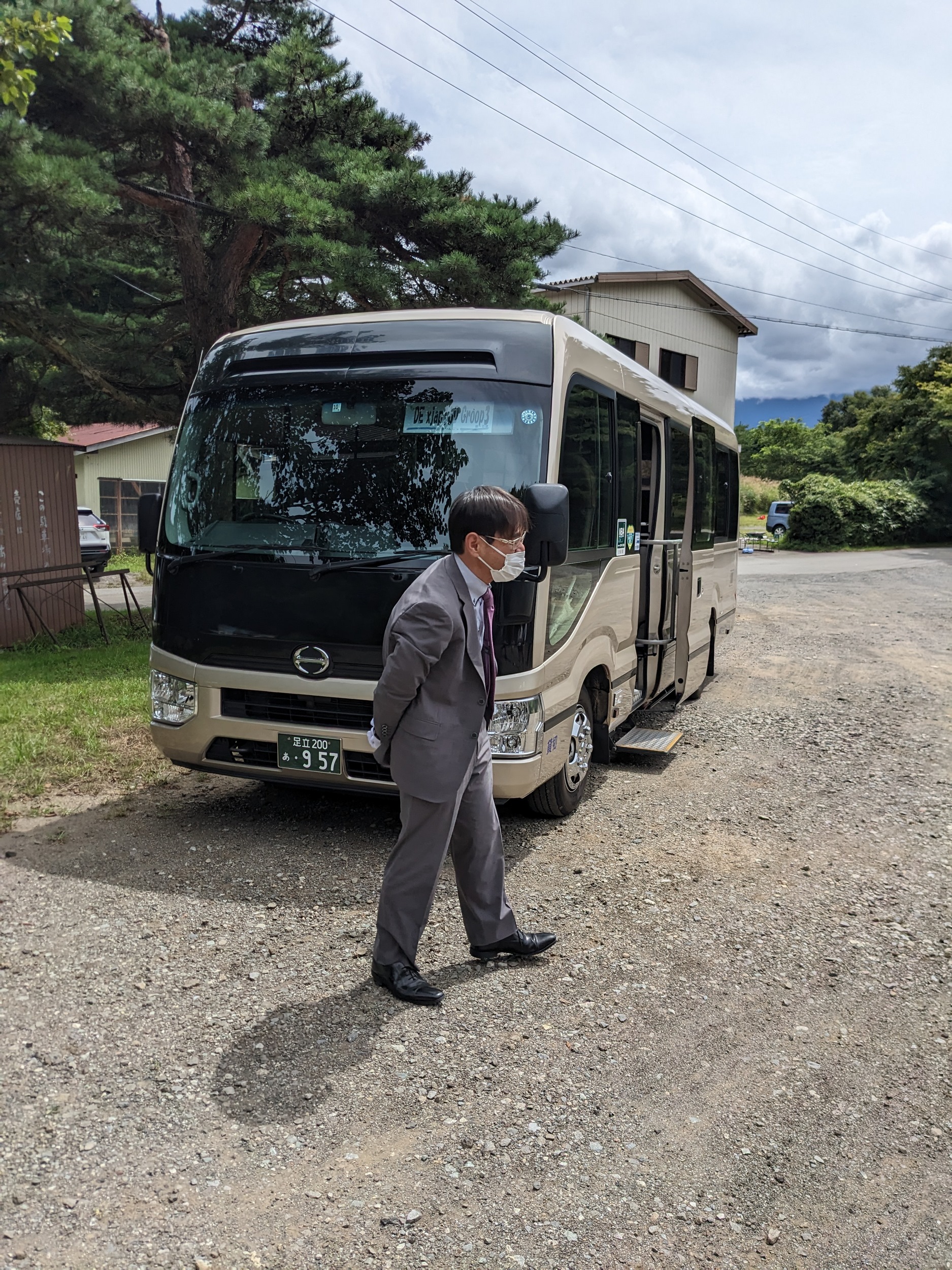 Nachdem wir gestern noch mal den gesamten öffentlichen Verkehr in Japan ausgekostet haben wurde es heute mal gemütlich mit einem Bus. An das vorzügliche Kaiseki Abendessen gestern schloß sich ein heute noch mal ein super Frühstück mit westlichen und japanischen Komponenten an. Heute war der Start für 8:00h angesetzt, der echt schicke Bus wartete schon auf uns. Der Mann am Bus war nicht der örtliche Bürgermeister der uns mit seinem Anzug, Krawatte und polierten Schuhen willkommen heißen wollte, sondern einfach nur der Busfahrer.