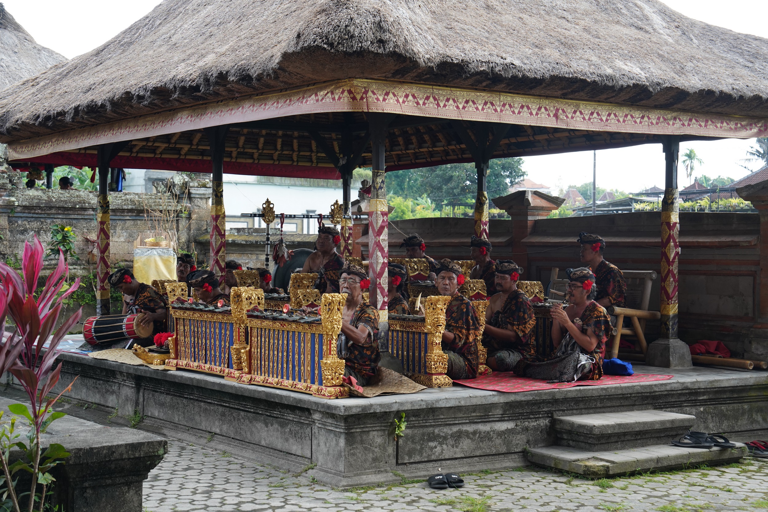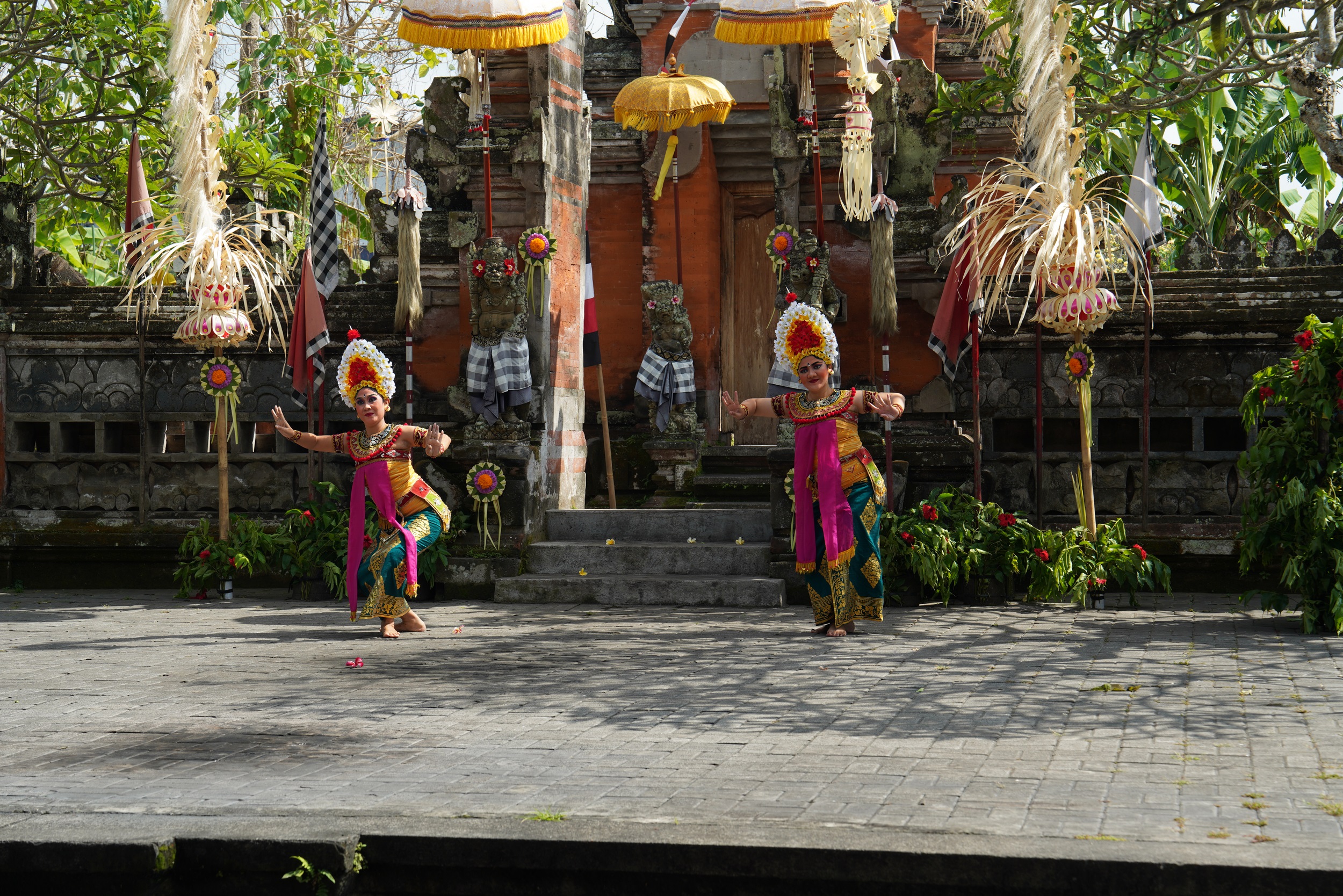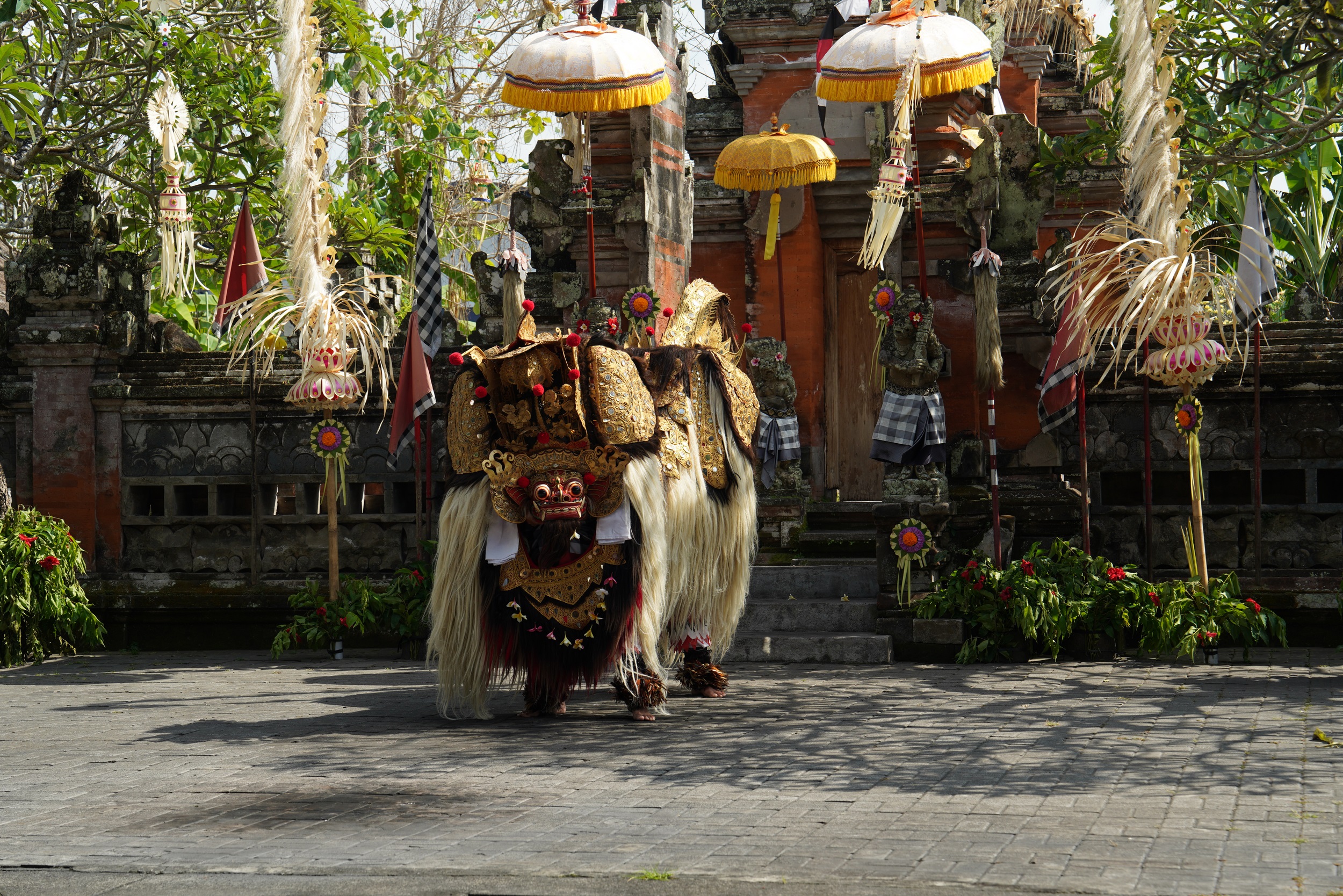 Heute hat uns der Rundreisealltag wieder, um sechs Uhr ging der Wecker und eigentlich wollen wir unser schönes Hotel noch gar nicht verlassen. Es gibt noch einmal das wunderbare Frühstück und dann stehen unser Guide Baskara und Fahrer Kadek schon vor der Tür und wollen los. Das erste Highlight des Tages ist eine Theater/Musicalvorstellung von ca. einer Stunde. Es geht um Gut gegen Böse, wobei hier keine von beiden Kräften gewinnt und es zu einem Gleichgewicht kommt. Das ist kurzweiliger als gedacht und mit dem Zettel der dazu geliefert wurde kann man die Geschichte die Erzählt wird nachvollziehen. Das ganze wurde mit Musik untermalt, wobei die Musiker die ganze Zeit keine Miene verzogen haben, die haben komplett emotionslos auf ihre Instrumente eingeschlagen und trotzdem einen gewissen Wohlklang erzeugt.