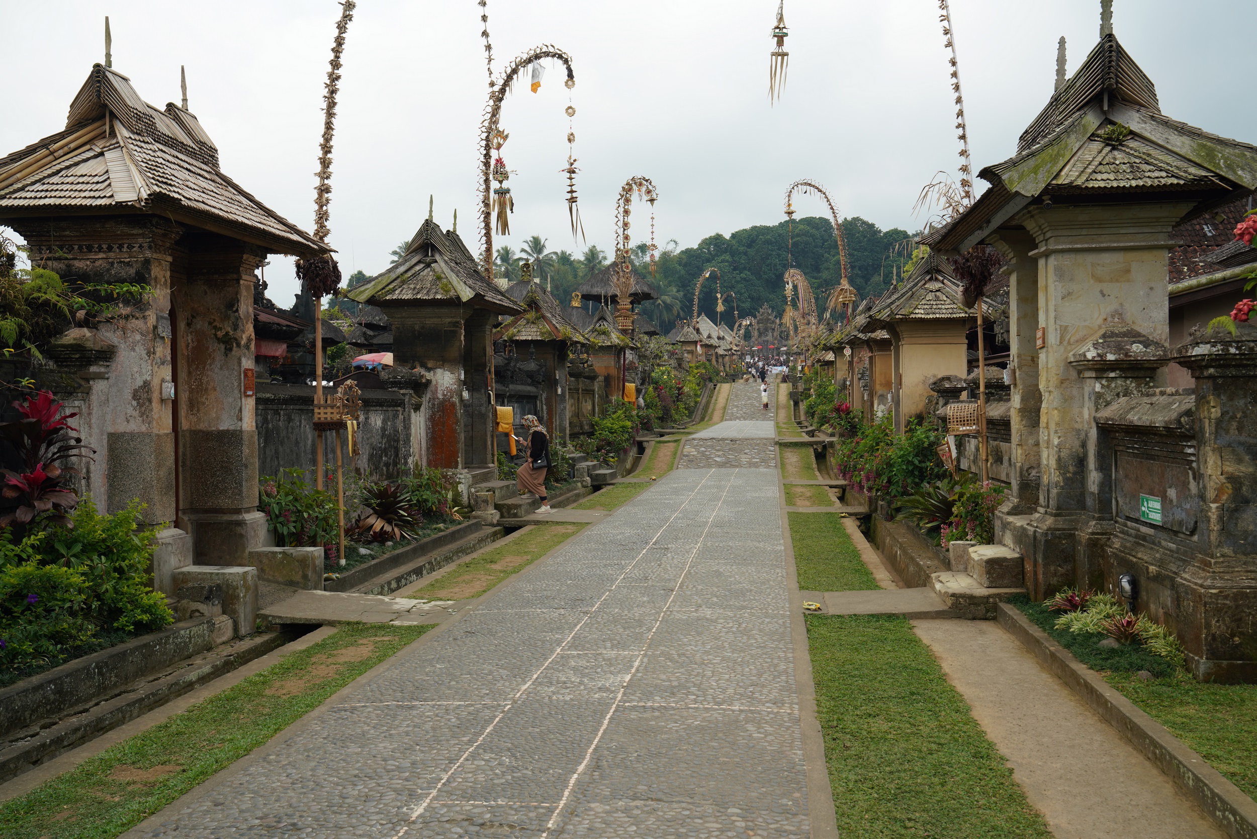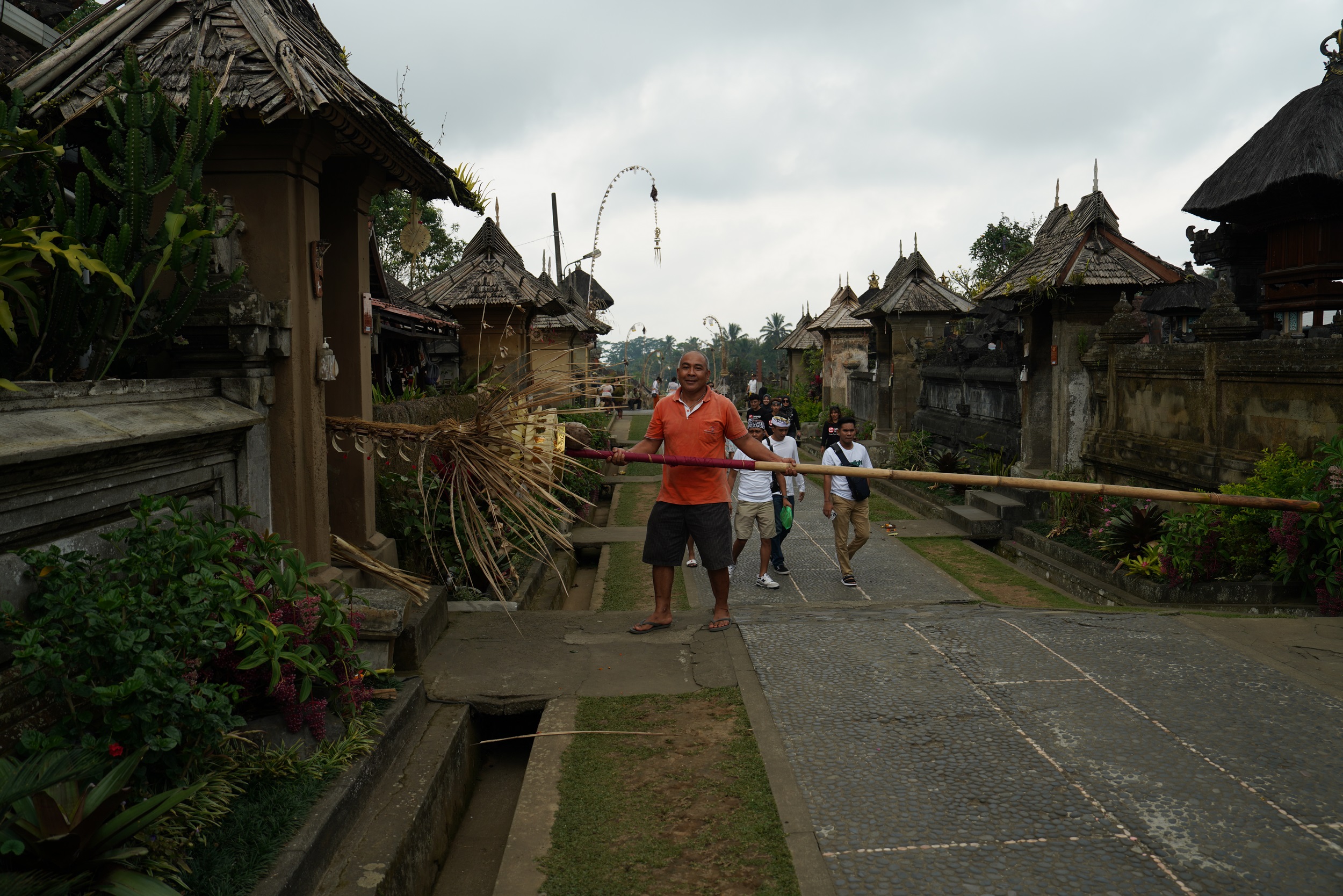 Tag zwei der Rundreise, das Boutique Hotel war nicht ganz so toll wie man es von einem kleinen Hotel erwarten würde. Trotzdem werde ich hier auf Bali von Tag zu Tag fitter und frischer. Also kann der Tag beginnen, mit der Fahrt ins Dorf Penglipuran, ein sehr ursprünglich erhaltenes Dorf, was die Einwohner zu ihrem Geschäftsmodell gemacht haben. Für den Eintritt betritt man einen wirklich ordentlichen und sauberen Ort, was hier auf Bali keine Selbstverständlichkeit ist. Wir können die Einwohner beobachten wie der Straßenschmuck anlässlich des Feiertages entfernt wird. Ganz so hoch scheint der Feiertag dann doch nicht zu sein, Baskara meinte die Leute gehen um 6:00h in den Tempel und danach ganz normal zur Arbeit, was auch die Straßenbauarbeiten die wir heute auf der Fahrt beobachteten erklärt.