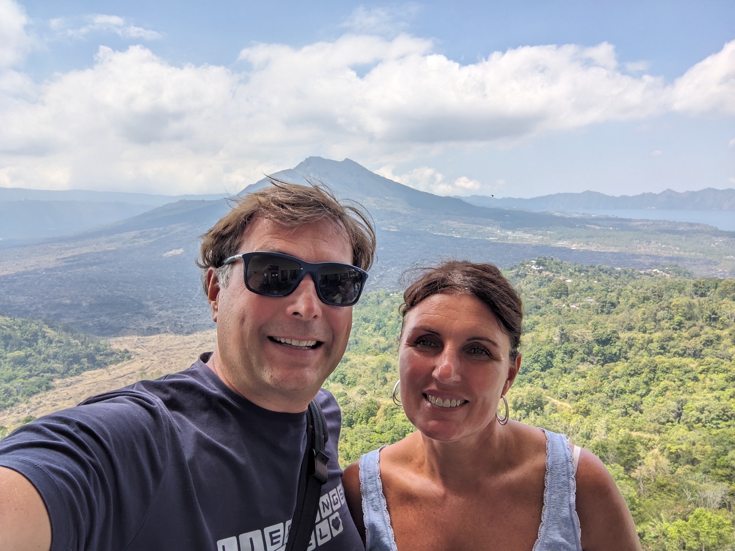 Das gab es nach langer Fahrt auf dem Rand der Caldera des Geoparks mit Blick auf den Batur See und den Berg Batur.