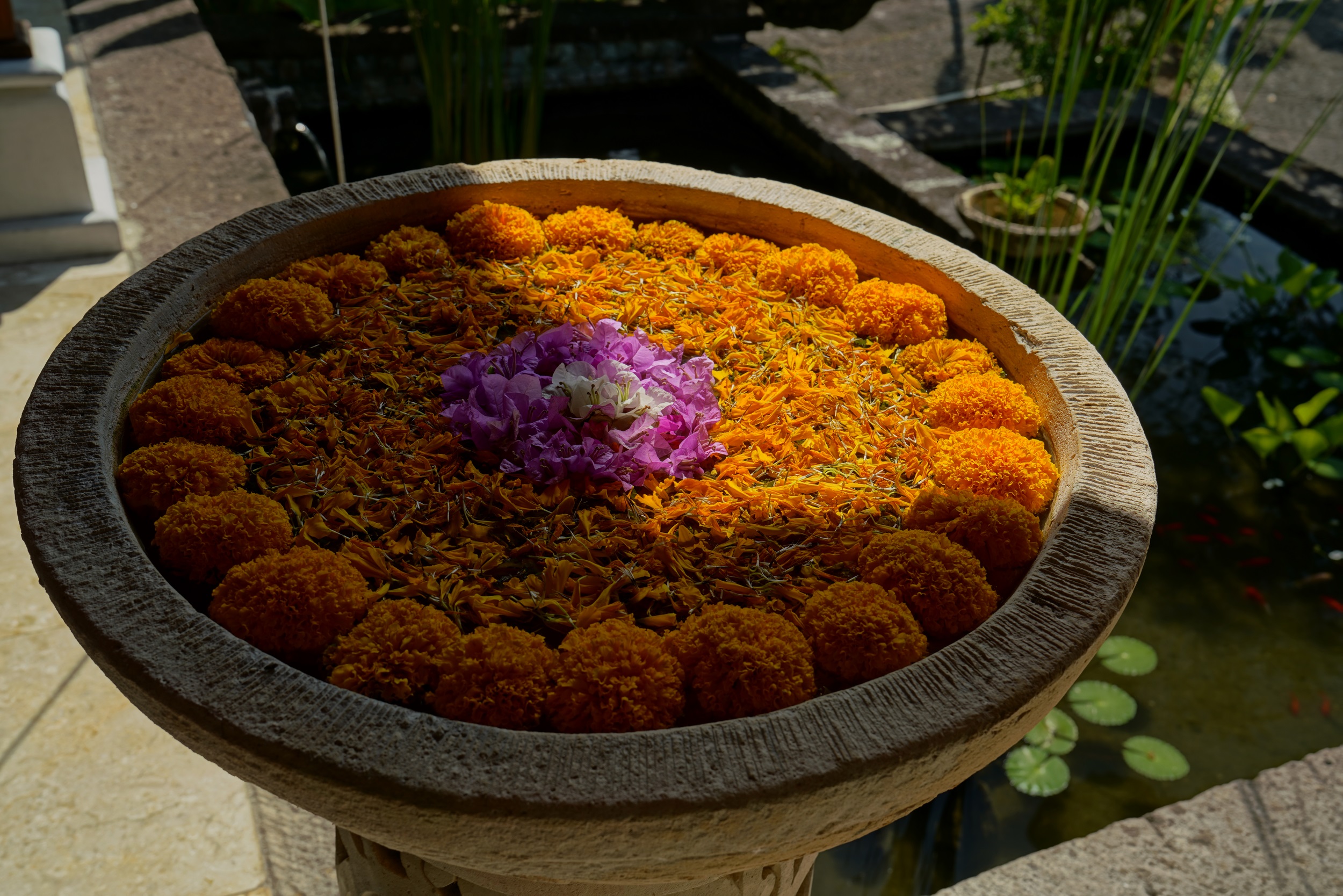 Nach 6,5h erreichten wir endlich Singapur von wo es nach 2,5h Aufenthalt, die wir mit einem leichten Mittagessen und ein wenig frisch machen verbracht haben weiter ging nach Bali. Diesmal war die Maschine in einem etwas besseren Zustand und wir flogen in einen wunderschönen Sonnenuntergang. Die Einreiseformalitäten waren schnell erledigt, eine SIM Karte gekauft und dann mussten wir entlang der Leute die Ihre Gäste abholen und unseren Guide finden, auch das hat geklappt und ab ging es die ca. 40min bis zu unserem Hotel für die kommenden beiden Nächte, das Seminyak Beach Hotel. Ganz schön nobel der Laden. Nach einem Bier und Wein reicht es für heute, Morgen werden wir die Aktivitäten für den Tag auf ein absolutes Minimum reduzieren.