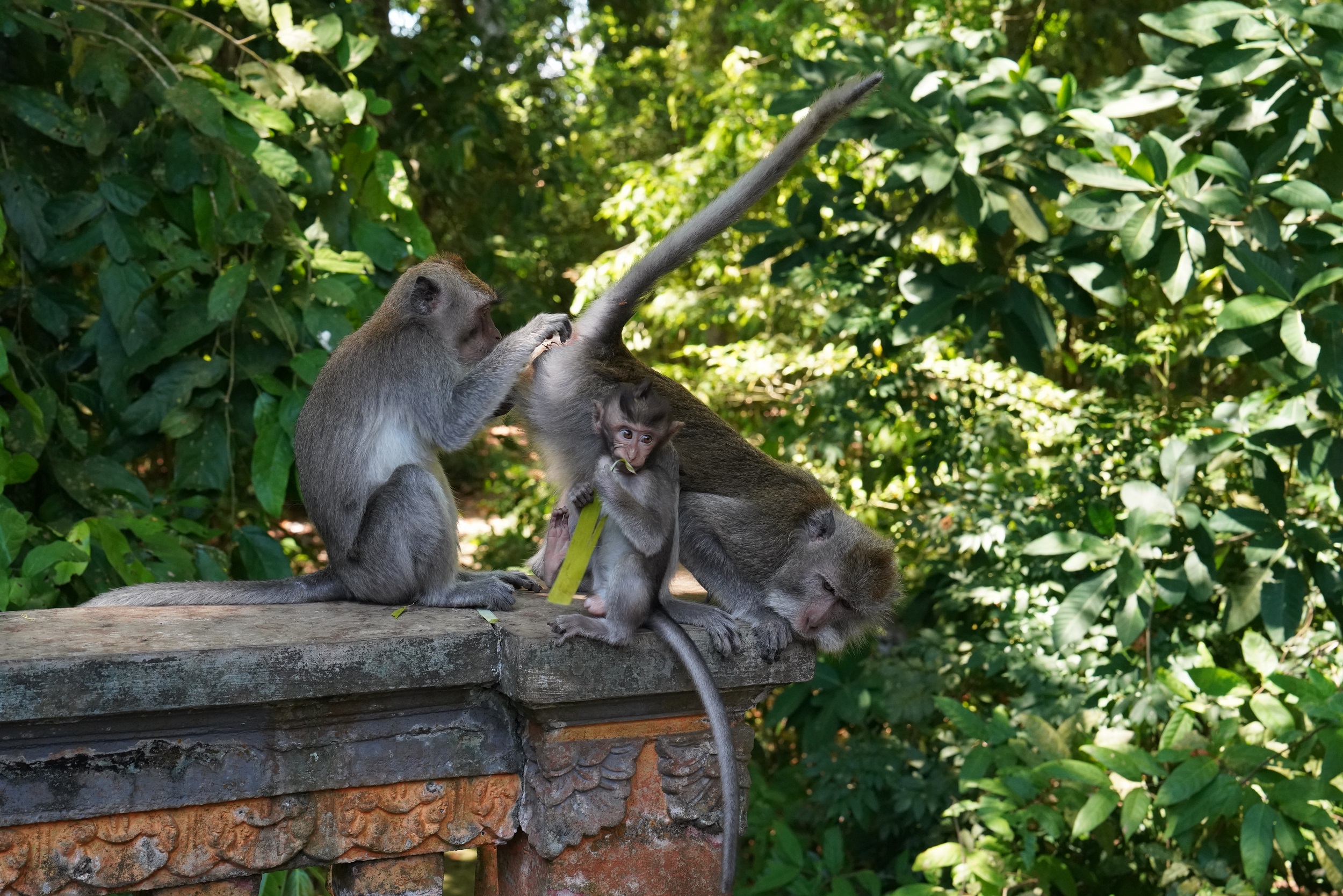 Um 9:30h ging es los zum Affenwald, einer Kolonie Affen die rund um einen Tempel regelmäßig gefüttert wird und dementsprechend gut gedeiht. Wir werden von einer der Damen die einen Verkaufsstand haben herum geführt, sie sorgt mit einem Bambusstab für unsere Sicherheit und wir müssen im Gegenzug in Ihrem Verkaufsstand etwas kaufen, was gar nicht mal so einfach ist bei dem ganzen Tinnef den wir nicht brauchen.