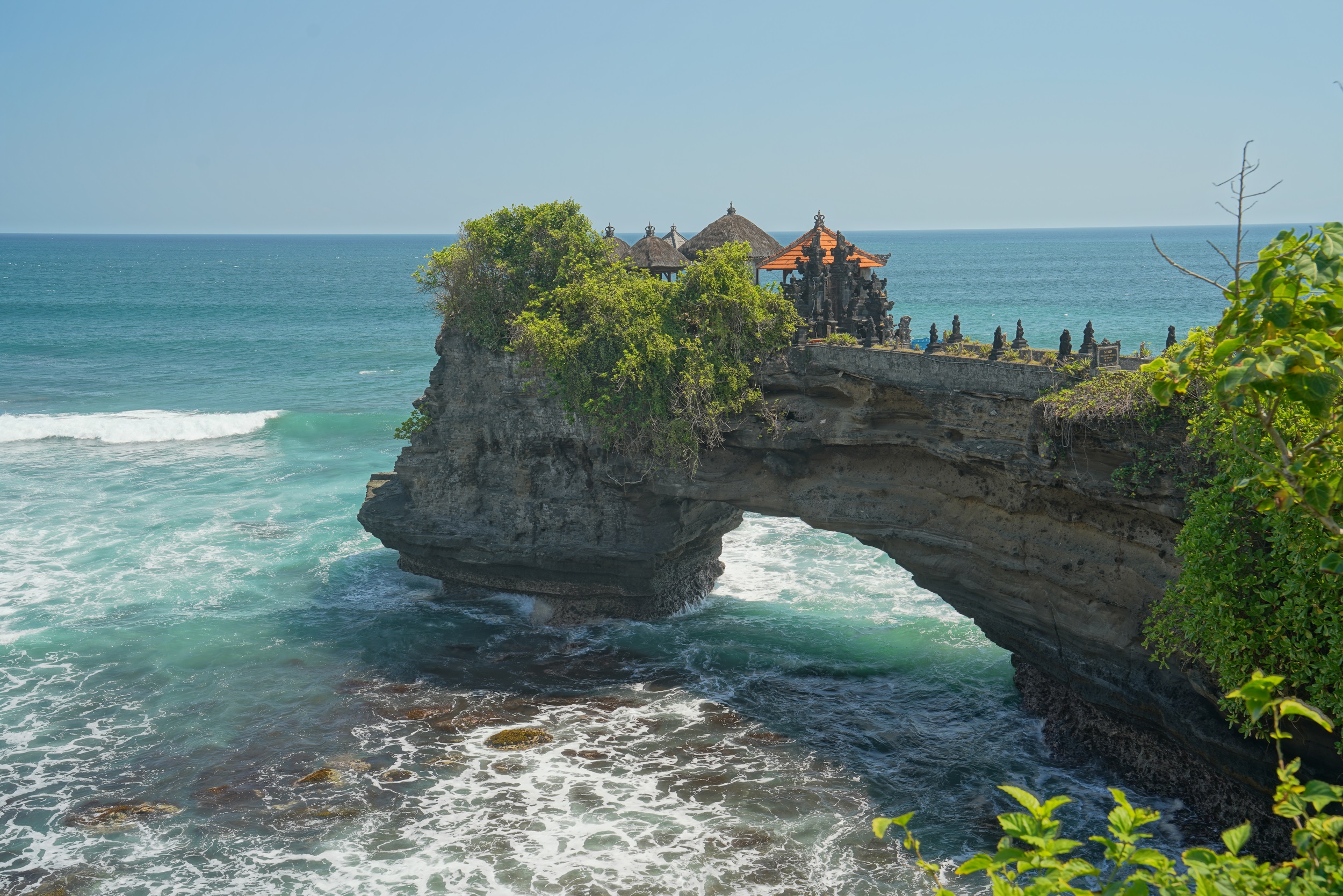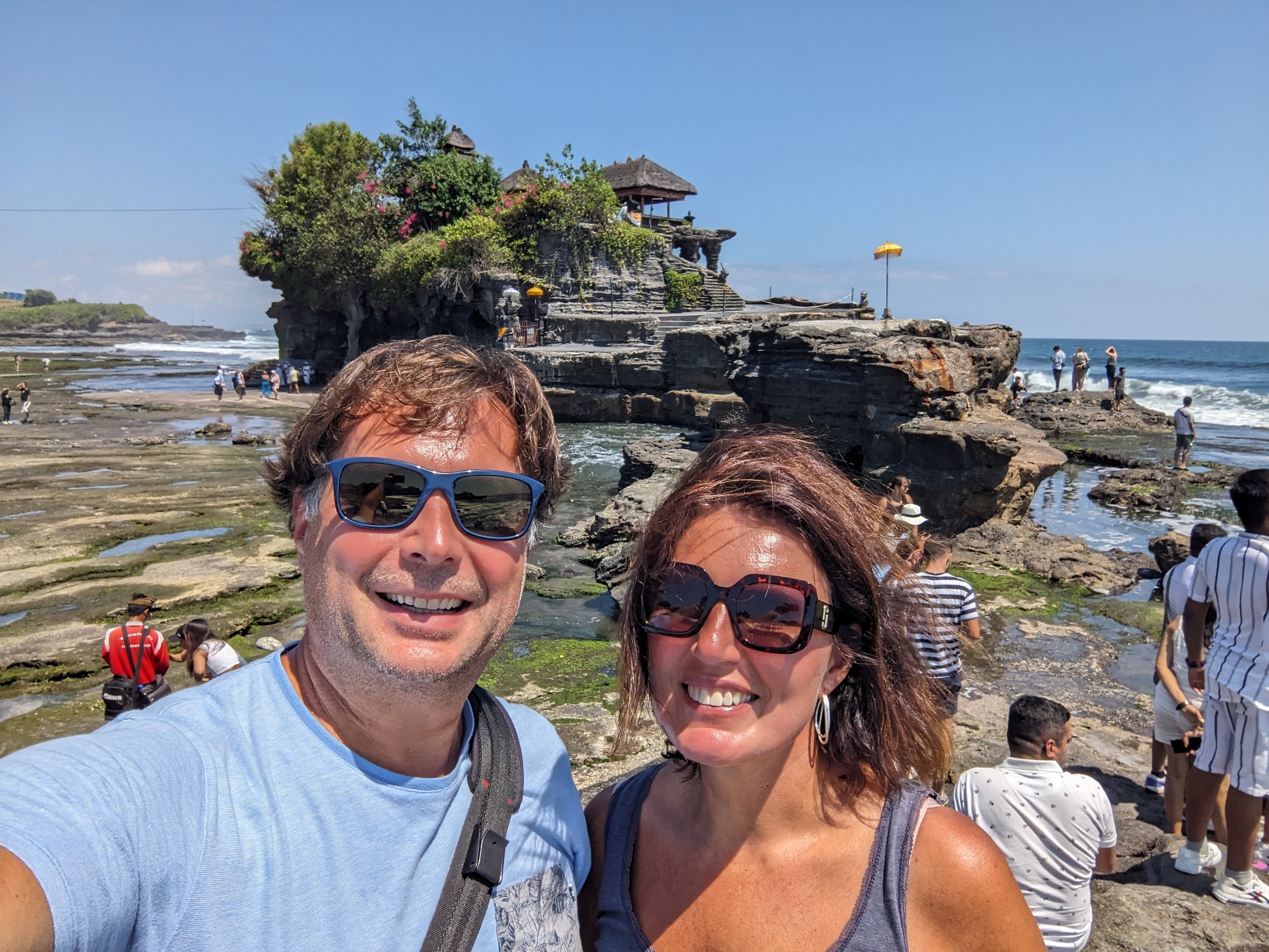 Von dort geht’s weiter zum Pura Luthur Tanah Lot, einem Tempel auf einem Felsen im Wasser, sicher der spektakulärste Tempel auf der Reise wenn er von der Brandung angeströmt wird. Auch ich hole mir beim Versuch zu fotografieren nasse Füße.