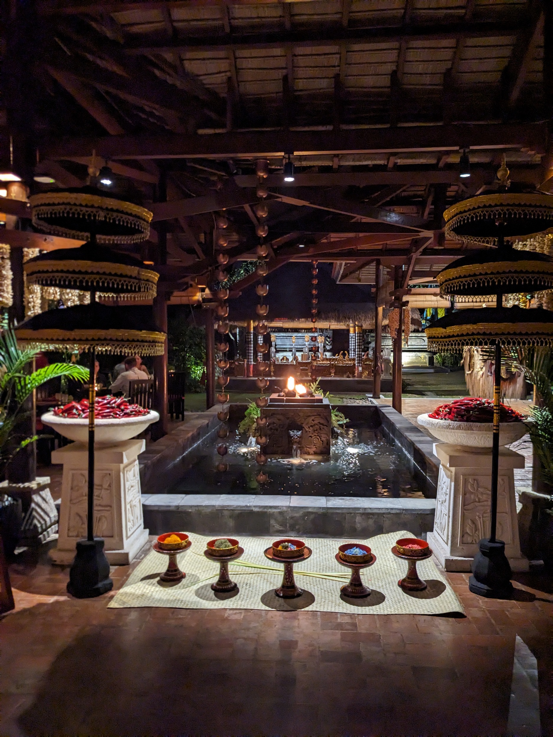 Als letzten Stopp gab’s noch einen Halt in der alten Hauptstadt Singaraja um einen Markt zu besuchen. Dort gibt es alles, Brillen, Kuchen, Obst, Gemüse, Ratten die herumlaufen, Karaoke singende Marktfrauen und vieles mehr. Das war vor unserem Hotel noch ein Eintauchen in das echte balinesische Leben. Das Hotel heute ist schön, direkt am Strand, während ich schreibe rauschen die Wellen, wir haben einen eigen Bungalow in erster Reihe mit Blick aufs Meer. So kann ein Tag nach einem schönen Sonnenuntergang ausklingen.
