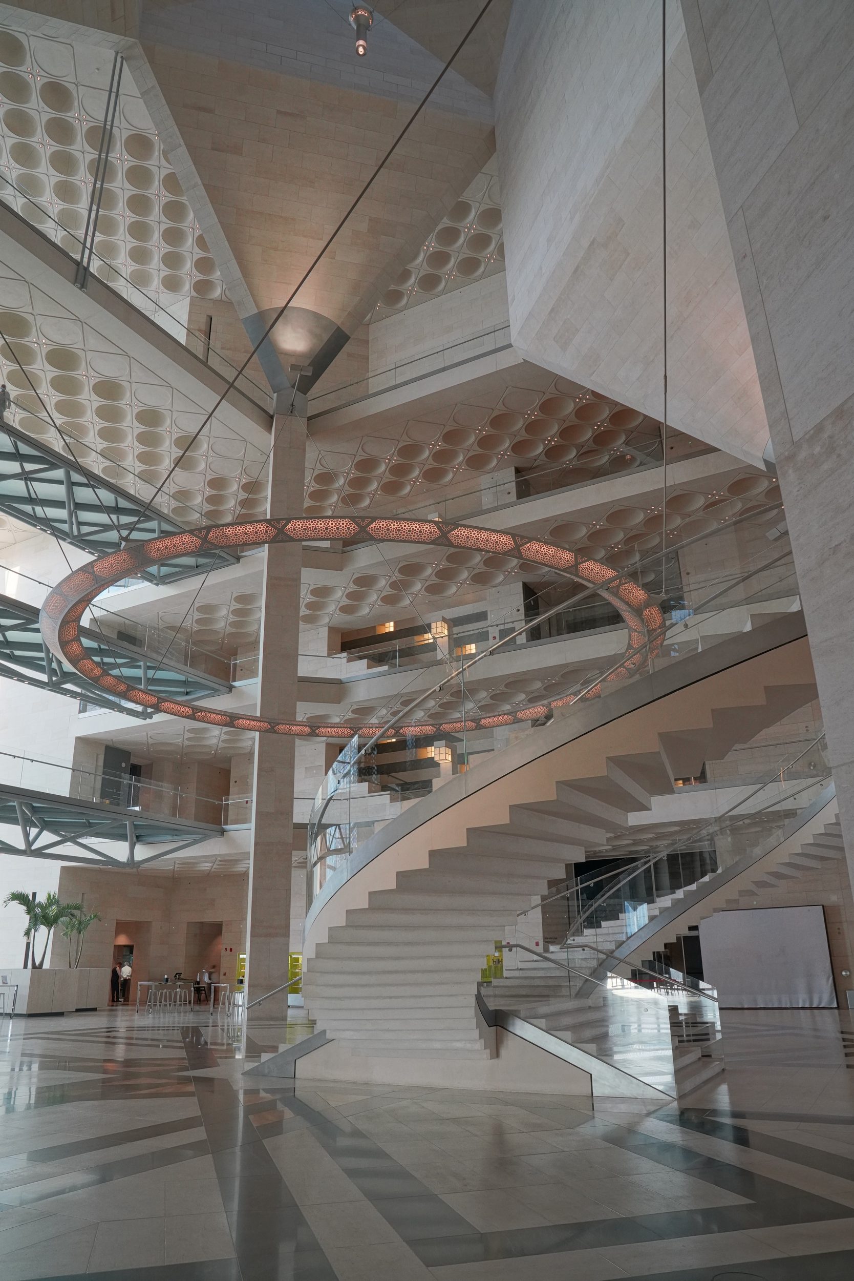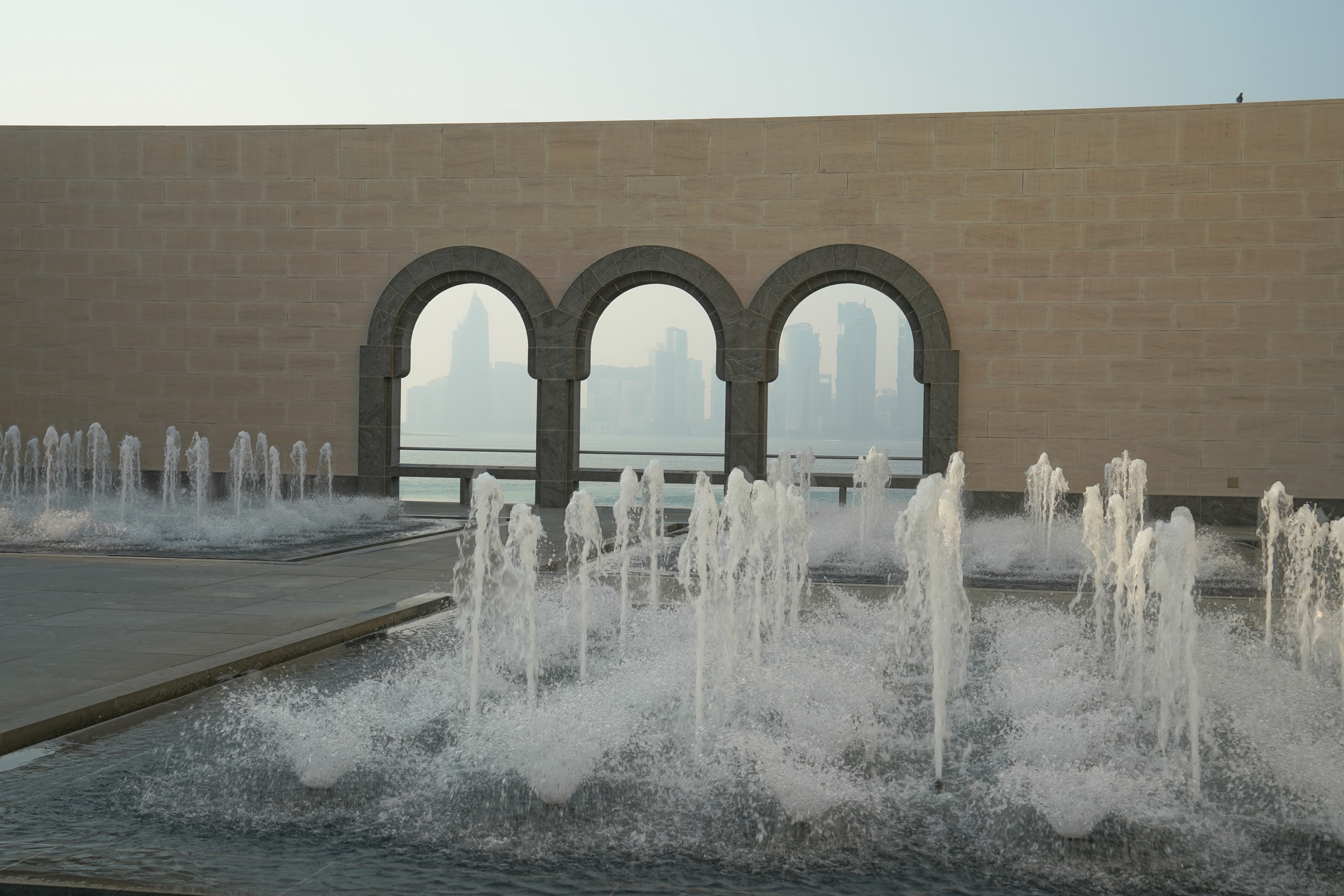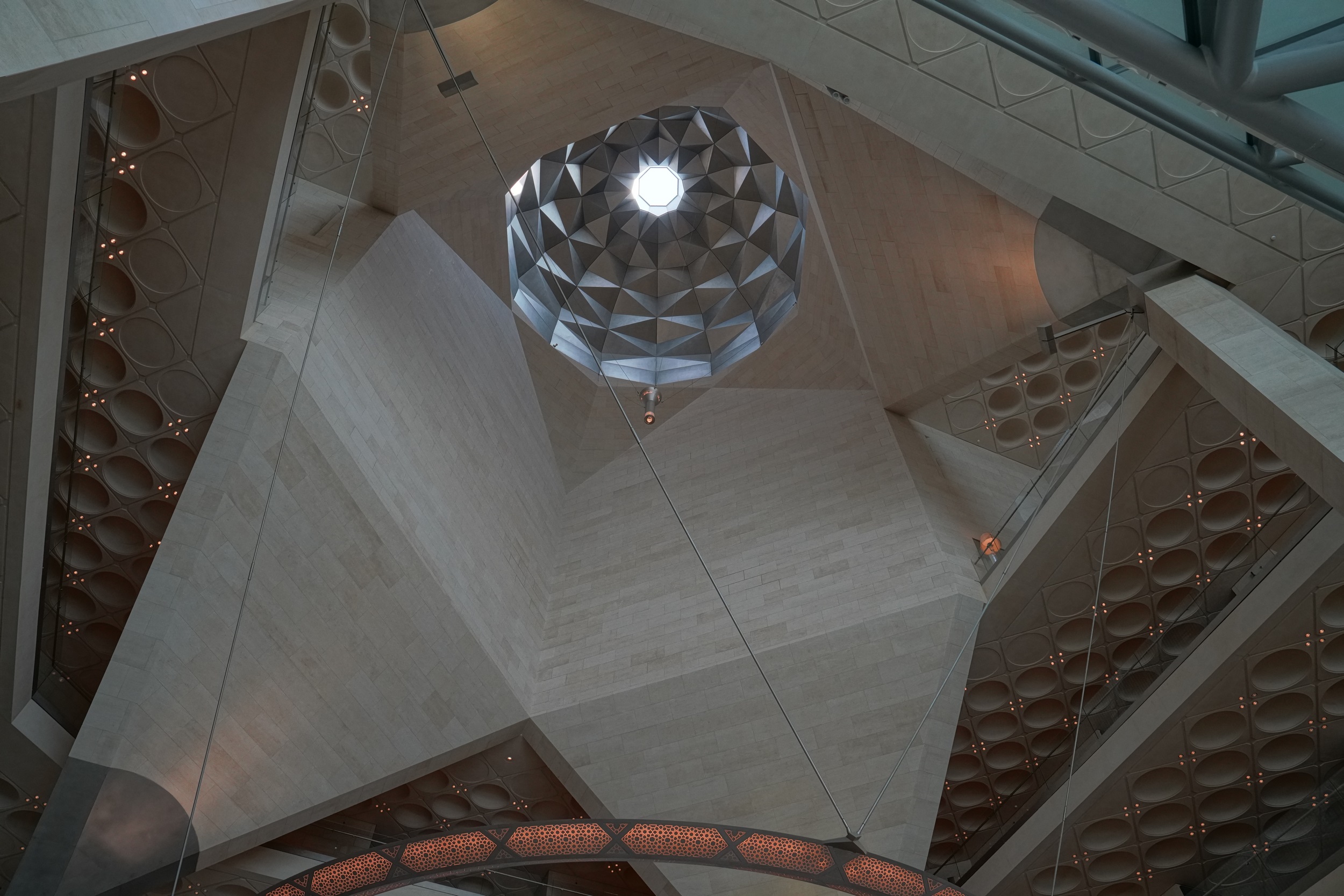 Das war ein langer Tag heute vor dem ich einigen Respekt hatte. Unser Flug nach Doha ging erst um kurz nach ein Uhr morgens ab Bali mit einer Flugzeit von 9,5h. War aber alles halb so schlimm. Erstens hatte Eva uns ja bessere Plätze gebucht, so dass wir zwei alleine in einer Reihe saßen, dann war es ein ziemlich neuer A350 der aufgrund seiner Sitzkonfiguration geräumiger als die 777 ist, ein sehr schönes Flugzeug und wir haben ganz gut geschlafen. So waren wir einigermaßen frisch um 5:00h in Doha, liefen über die endlosen Korridore Richtung Gepäckausgabe, wo fast nichts los war weil alle Doha nur als Drehkreuz nutzen und waren dann recht fix draußen. Am Schalter von Doha Tourismus erwartete man uns schon. Beim Rausgehen aus dem Flughafen traf uns dann die Faust von Doha, es war um kurz vor sechs schon unerträglich warm gepaart mit einer extrem hohen Luftfeuchtigkeit. Der Fahrer zum Hotel stand schon parat und wir konnten direkt um sechs Ihr aufs Zimmer. Den Vormittag hab ich dann vertrödelt, wogegen Eva 80 Bahnen im 25m Pool des Hotels geschwommen ist. Nachmittags sind wir dann mit dem Uber für ca. 4 EUR zum MIA, Museum of Islamic Art gefahren. Erst mal hat das Gebäude eine tolle Architektur und die Ausstellung mit seinen Artefakten von Spanien bis Indonesien war so interessant, dass wir uns komplett durchgearbeitet haben. Was ein wenig fehlte war die zeitgenössische Kunst, wogegen es sehr viele alte Sachen, die teilweise über 1000 Jahre alt waren, zu sehen gab.