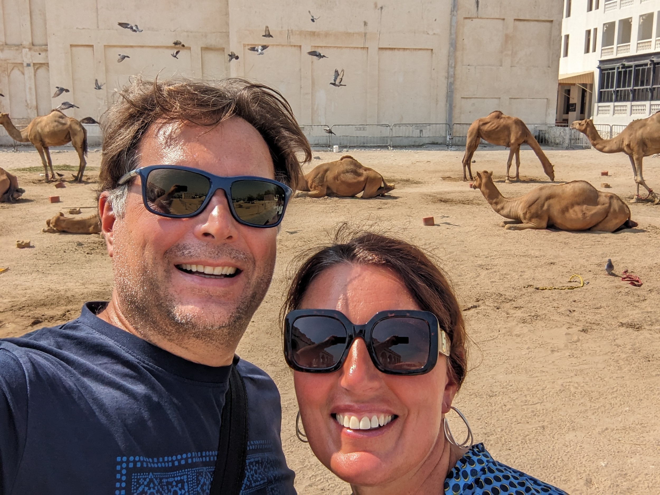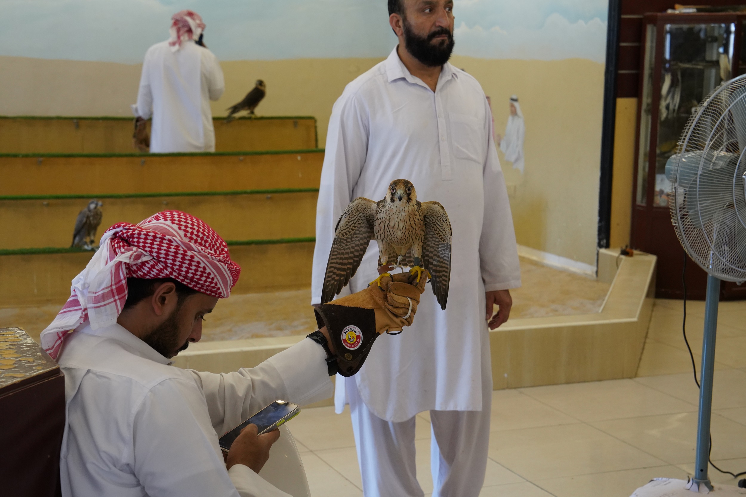 Da es sehr heiß war stand als Warteraum der gut gekühlte Reisebus bereit und dann ging es zu Fuss los in den Souq Waqif. Pia zeigt uns einige Besonderheiten bei den Gewürzen, den Aufenthaltsraum der Markthändler, einen Parfümladen der auch Düfte zusammenmischt usw. weiter ging es zu den Kamelen und dann den Falkenverkäufern und dem Falkenkrankenhaus. Das war noch mal eine gute Ergänzung zu dem was wir gestern bereits gesehen hatten.