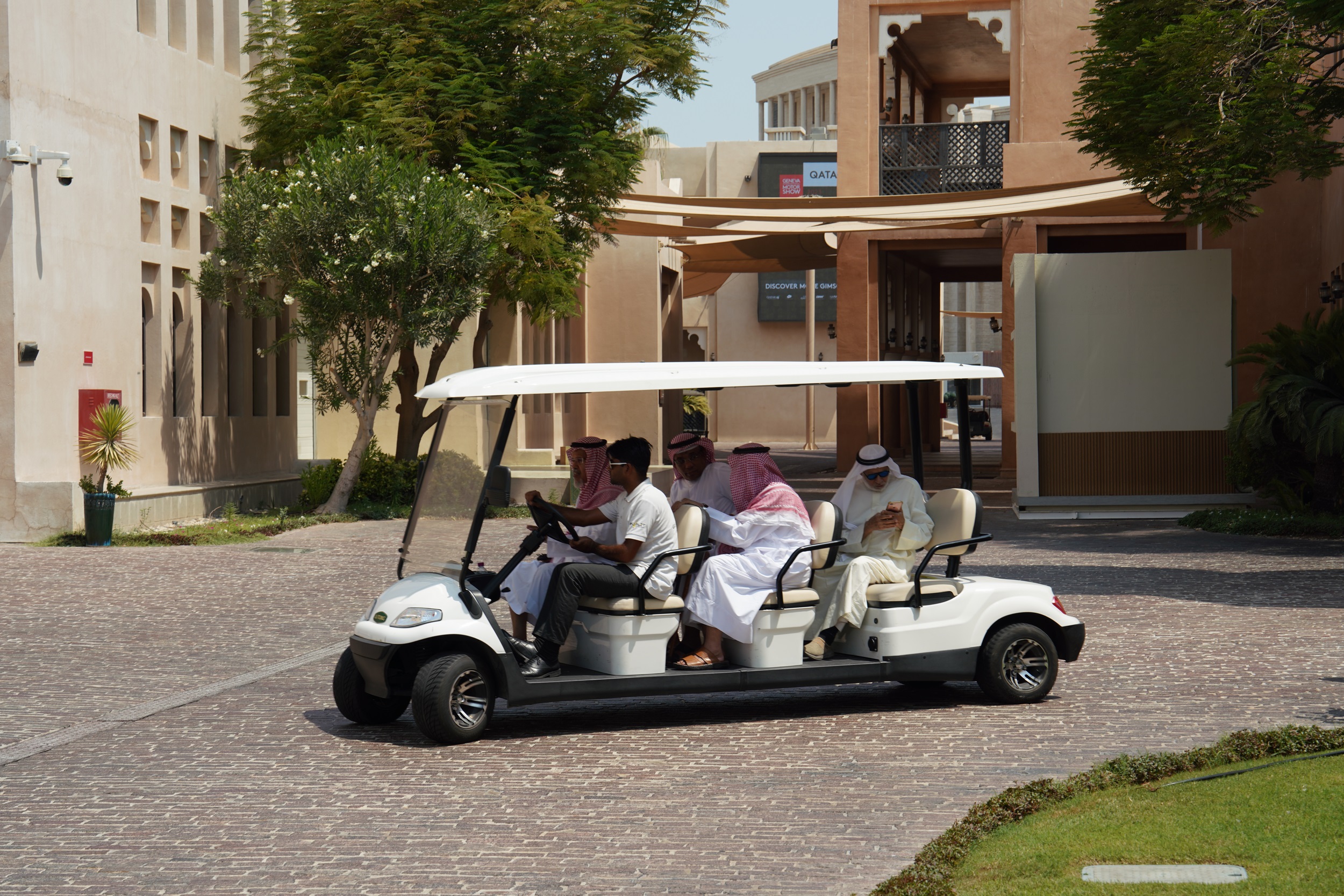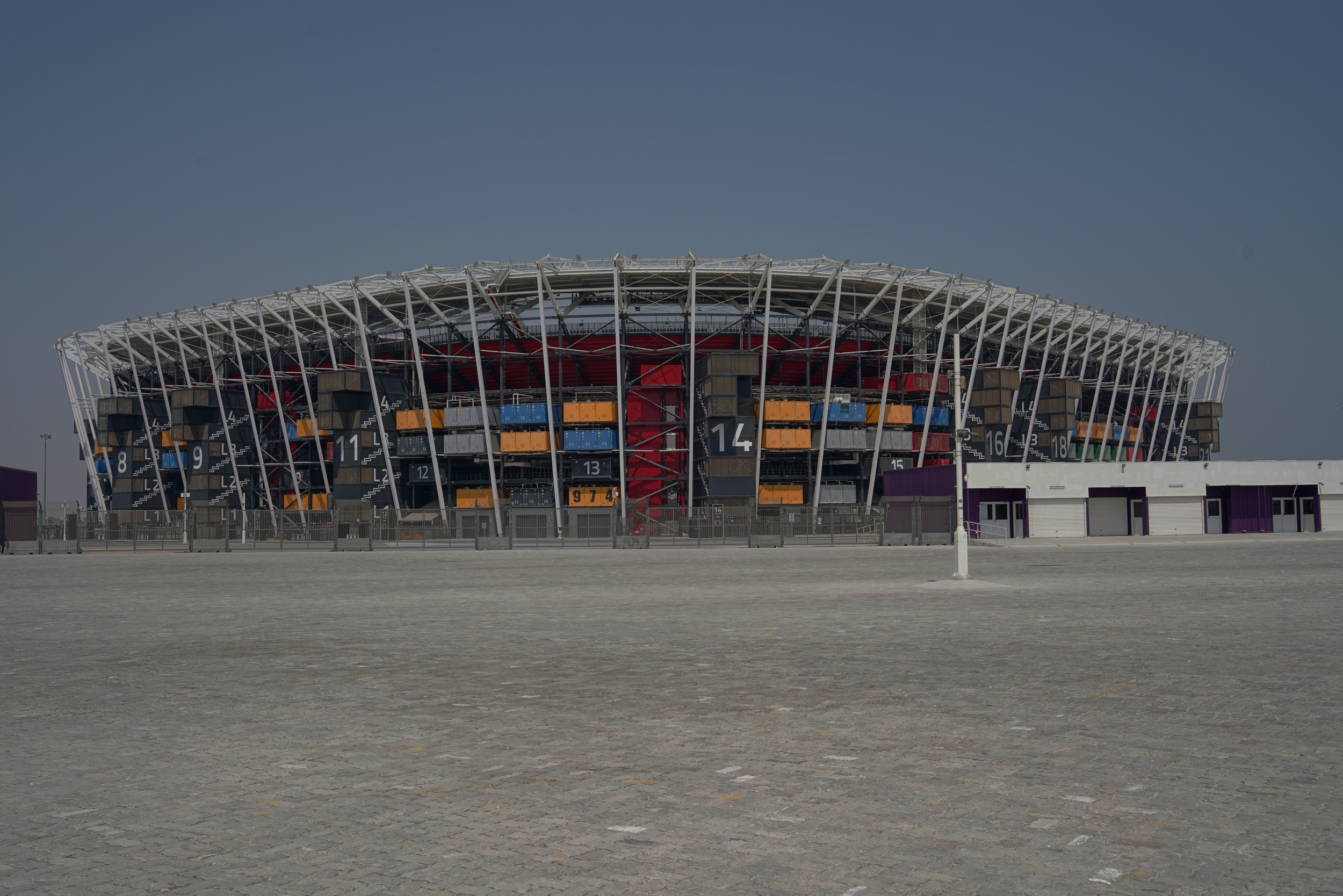Der nächste Stopp ist der Dhau Hafen, die dort zu touristischen Zwecken liegen, viel besser ist aber der Blick auf die Skyline von Doha, die heute nicht ganz so schlimm hinter dem Dunst verschwimmt. Auf den Hafen folgt ein Abstecher zum Stadion 974, dass unter anderem aus 974 Überssecontainern gebaut wurde und 974 steht auch für die Länderkennung von Qatar. Das Stadion kann abgebaut und an anderer Stelle wiederaufgebaut werden, was dann irgendwo in Afrika auch passieren soll.